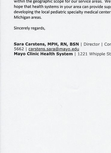 Thank you for all your work trying to increase health care access for children in rural areas. I hope these resources and contacts help. Please let me know if you require any additional information. Signed Sincerely, Bella Byrnes
